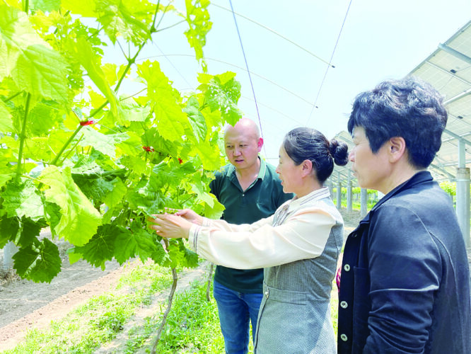 光伏板下种植的“阳光玫瑰”葡萄长势良好。