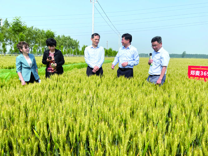 据省农科院小麦所所长雷振生介绍,面包面条兼用型优质强筋高产小麦新品种郑麦369,具有产量三要素协调、抗病抗逆性突出、制品加工特性优良等特点,其中吸水率较其他优质品种高出8%~10%,被列入河南省主推优质品种目录,深受加工企业欢迎,全省订单生产面积达100万亩。在今年锈病、赤霉病、倒春寒等逆境多发情况下,郑麦369和观摩的另一品种郑麦158仍表现出诸多优异特性,丰收在望,在黄淮南部麦区具有广泛的应用前景。