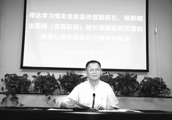 本报讯 6月7日,本报社召开专题会议,传达学习省委宣传部副部长、省新闻出版局(省版权局)局长谭福森到本报社调研座谈时的讲话精神。本报社社长李志民主持会议并讲话。