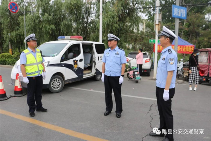 6月7日至8日高考期间,睢县交警大队科学部署警力,在全县4个考点周边路段开展交通秩序维护工作,广大参战民警辅警,不畏酷暑,连续作战,加强交通管控,严格落实各项管控措施,确保考场周边路段畅通、安全、安静、有序,确保考生考前顺利到达和考后安全离开考点,圆满完成了高考交通安保工作任务。