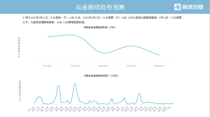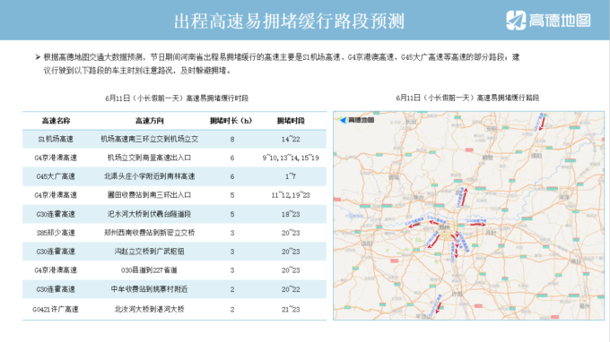 2021年6月12日至14日端午假期放假3天,端午假期期间全省高速公路不免费通行。端午假期群众中短途出游多、民俗活动多、走亲访友多,自驾出行和客运流量将大幅攀升,道路交通安全风险增大。为保障群众端午假期出行平安,河南省公安厅高速交警总队结合高德地图《2021年河南省端午出行预测报告》大数据分析和近年端午假期出行特点,综合研判,提前部署,两公布一提示,多措并举护航保通,为群众端午假期出行创造平安、畅通、和谐的高速公路交通环境。