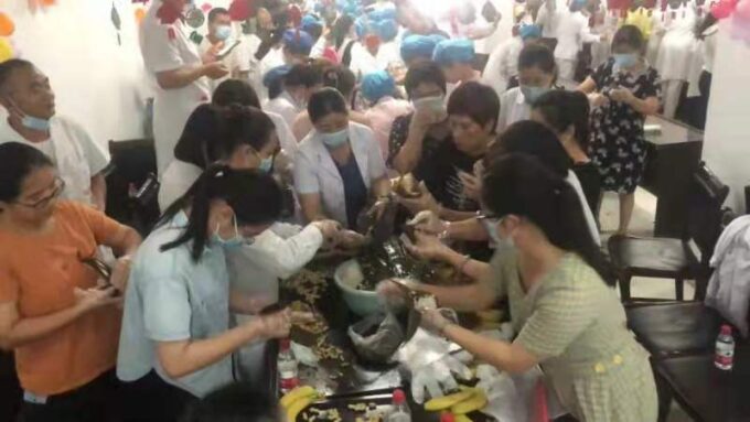 此次活动集趣味性、娱乐性、文化性和协作性于一体,设置了历代诗词朗诵、古诗词对句、包粽子等环节。赵小翠、井亚萍、谢欢、陈明明饱含深情地朗诵了不同历史时期的优美诗词。古诗词对句更是激发了大家的参与热情,展现了三院人高深的文化素养。其间,高金保主任一曲《人间第一情》,赢得了大家阵阵热烈的掌声。包粽子环节将整场活动推向了高潮,院领导同职工一起动手,其乐融融,体现了三院齐心协力的精神。其间的配乐散文诗朗诵《站在三院的阳台上品味春天》,勾起了大家对2020年春天抗击疫情的追忆和对三院美好未来的向往。张学红科长一曲《难忘今宵》为本场活动画上完美的句号。活动在欢乐、和谐、紧张、热烈的气氛中持续了一个多小时。