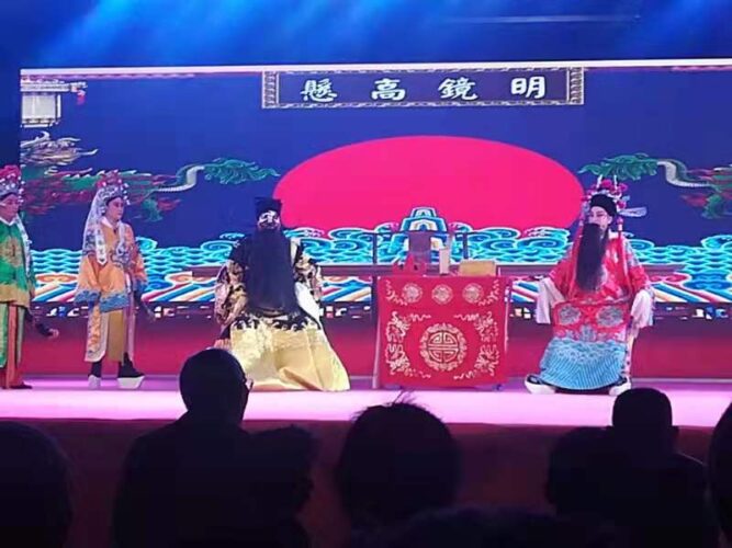 “九尽春回百花开,鸿雁飞去紫燕来,风吹柳枝飘飘摆摆,睹景伤情忧思满怀……”6月10日傍晚,随着熟悉的唱腔响起,商丘市宁陵县宏发豫剧团演出的传统剧目《桃花庵》,在该县葛天剧院露天广场上演出。台上的演员声情并茂,激情演绎;台下的观众忘我入戏,不时还随着唱上几句,演到叫好处,更报以热烈掌声欢呼鼓舞,掌声阵阵。