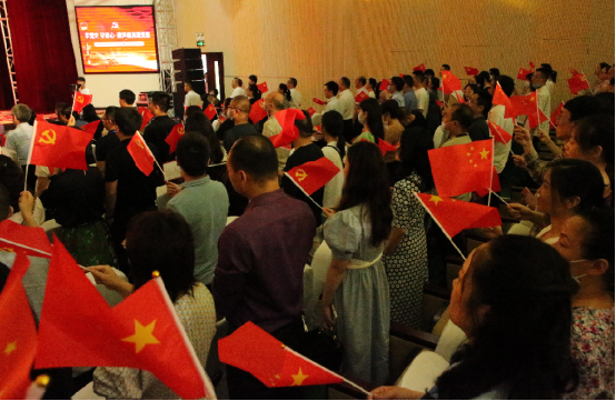 “我宣誓:我志愿加入中国共产党,拥护党的纲领……”伴着县自然资源局合唱方队庄严的宣誓声,大合唱《走向复兴》骤然响起。“我们迎着初升的太阳,走在崭新的道路上……”刹那间,“呼啦啦啦”台上台下再次红旗招展,全场歌声一片,热潮滚滚。