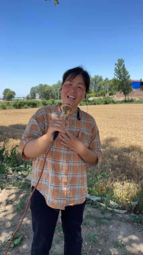 任瑞芳在田间进行直播。