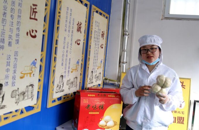 延麦香馒头坊创立者崔蒙蒙在为记者进行介绍公司产品。