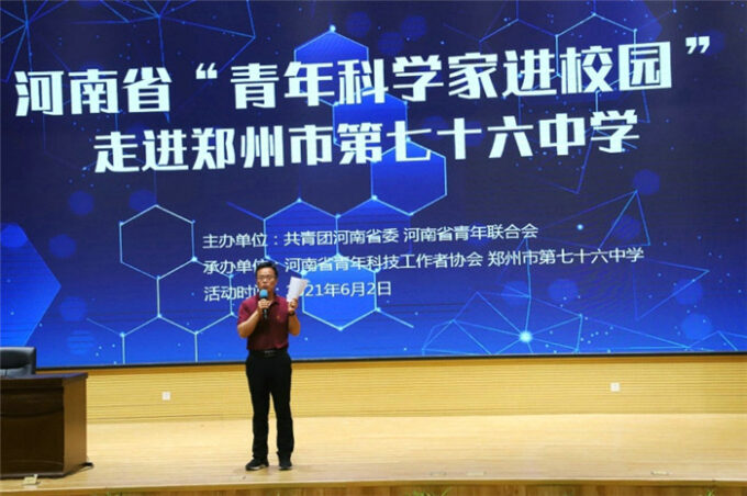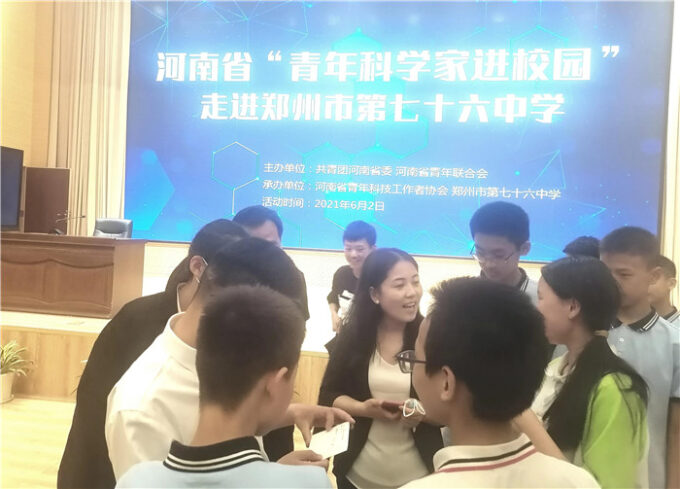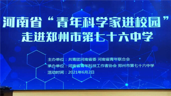 2021年6月2日,由共青团河南省委、河南省青年联合会主办,河南省青年科技工作者协会、郑州市第七十六中学承办的河南省“青年科学家进校园”活动,走进郑州市第七十六中学,为学子们带来了一场科学盛宴,让孩子们有机会和身边的科学家面对面。