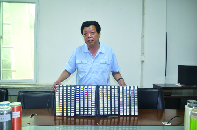 新乡化纤股份有限公司技术中心主任谢跃亭展示他研发的纤维新产品。