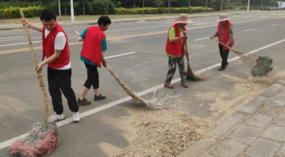 柏城志愿者清障队伍及时清除道路上的残余秸秆和垃圾