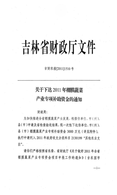 从谢显林提供的文件可以看出,吉林省财政厅文件:吉财农指【2011】1510号从政府上报的验收结果向黑林镇东太平村下拨补贴资金。