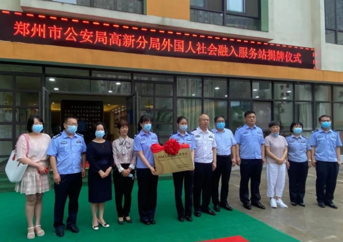 6月17日上午,由郑州市公安局高新分局出入境管理大队主导的“外国人社会融入服务站”揭牌仪式在郑州高新区职工文化活动中心举行,郑州市公安局出入境管理处、郑州高新区管委会、郑州大学、河南工业大学、高新分局负责同志和高新区20余名外籍人士代表等共同参加。活动由郑州市公安局高新区分局副局长武新业主持,郑州市公安局出入境管理处处长张煜舟、郑州高新区管委会工会主席王桂丽为服务站揭牌。