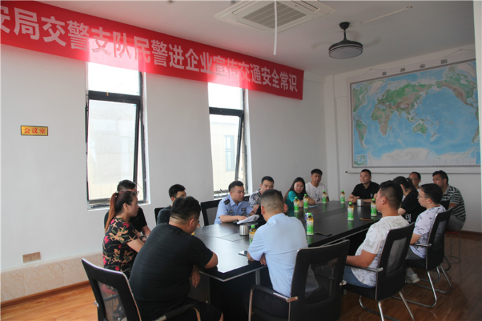 6月17日上午,为进一步抓实企业管理主体责任,增强企业全体员工的交通安全意识、责任意识,商丘市公安局交警支队联合《商丘日报》法制新闻部,共同走进商丘市安顺建材公司开展交通安全宣传进企业活动。特邀请交警直属二大队宣传民警王豪杰进企业进行交通安全知识宣讲。安顺建材公司总经理宋波和销售经理刘星、业务经理高震、售后经理韦韦及全体员工共30余人参加了活动。