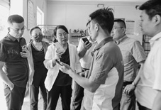 朱明芳(左三)在孟州航空邮件分拣点调研。