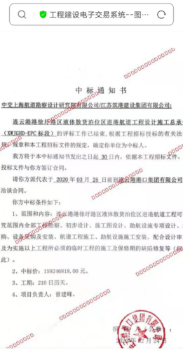 读者在来信来电中,非常愤慨的反映:招标文件要求投标企业及项目经理的基本条件是需要投标人(投标企业及项目经理1人)近5年至少独立完成过一项航道整治或航道疏浚项目业绩(单项合同额不低于15000万元、工程质量合格),而不是兼职或共同完成!列入复评候选人企业的江苏筑港建设集团有限公司的是联合体业绩,与中交上海航道勘察设计研究院有限公司共同完成(以往《中标通知书》(扫描件附件见下图)),曾参与的工程业绩的中标第二位资格,参与了2020年2月24日由连云港港口集团有限公司发放的《中标通知书》中的连云港港圩港区的部分工程项目(以往《中标通知书》(扫描件附件见下图)。显然不是独立项目经理业绩,不符合要求却没有废标。