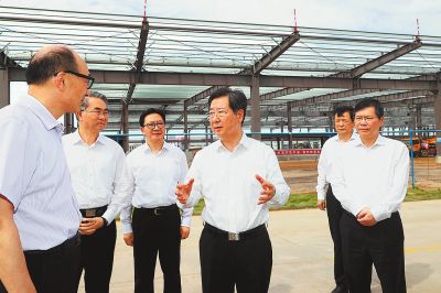 6月18日,省委书记楼阳生在郑州机场北货运区查看机场三期扩建工程建设情况。本报记者 董亮 蔡迅翔 摄