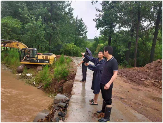 党员干部防汛值守践初心。街道党工委副书记、办事处主任罗继昌冒雨带领人员第一时间到辖区水库、河塘沟渠、327省道施工现场等地实地排查汛情隐患,组织人员疏通河道。