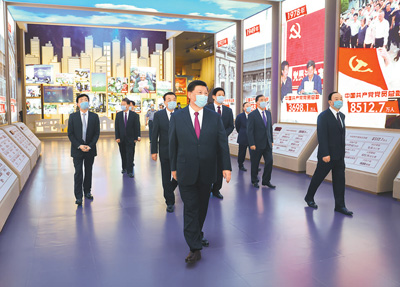 在庆祝中国共产党成立100周年之际,中共中央总书记、国家主席、中央军委主席习近平18日前往中国共产党历史展览馆,参观“‘不忘初心、牢记使命’中国共产党历史展览”,并带领党员领导同志重温入党誓词。他强调,党的历史是最生动、最有说服力的教科书。我们党的一百年,是矢志践行初心使命的一百年,是筚路蓝缕奠基立业的一百年,是创造辉煌开辟未来的一百年。回望过往的奋斗路,眺望前方的奋进路,必须把党的历史学习好、总结好,把党的宝贵经验传承好、发扬好,铭记奋斗历程,担当历史使命,从党的奋斗历史中汲取前进力量。要教育引导广大党员、干部通过参观学习,更加自觉地不忘初心、牢记使命,增强“四个意识”,坚定“四个自信”,始终在思想上政治上行动上同党中央保持高度一致,坚定理想信念,学好用好党的创新理论,赓续红色血脉,发扬光荣传统,发挥先锋模范作用,团结带领全国各族人民,更好立足新发展阶段、贯彻新发展理念、构建新发展格局,全面做好改革发展稳定各项工作,汇聚起全面建设社会主义现代化国家、实现中华民族伟大复兴中国梦的磅礴力量。