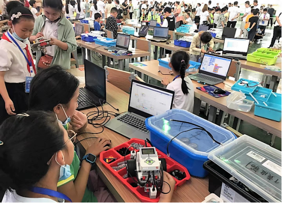 赛场上,小选手们沉着冷静,有条不紊地调试机器、适应场地、修改程序。他们带着自己组装、编程、指挥的各类机器人,将科学知识与动手能力完美融合,尽情享受充满创新、创意的科普活动。