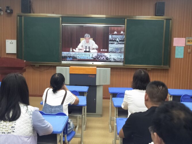 6月18日上午,三门峡市湖滨区磁钟小学组织全体教师观看教育部教师思想政治和师德师风建设经验交流暨师德专题教育启动部署会议视频。