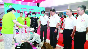 郭晓丽(右五)到“科学抗疫 守护健康”科普活动周活动现场指导工作。