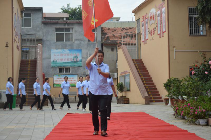 中考的号角已经吹响,一场渴望太久的战役就要打响,九二班王大鑫同学代表九年级学生表态:一定不负老师们的嘱托和家长期望,不负三年来的努力拼搏,保持自信、注意方法、专心致志,力争在中考中发挥出最佳水平,实现个人梦想,为母校增光添彩!随后,带领九年级的同学们举起右拳,面向国旗进行离校前的最后一次宣誓,为自己的出征壮行。