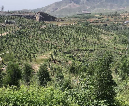 随行采风的郏县众和建材公司副总经理王云告诉记者,众和建材公司有黄北、黄南、老庄、谒主沟、江山、高坡、石望河等采区,合计采矿面积为1.8815平方公里。该公司已累计投入资金约6000万元、人力25000余人次、设备3500余台(班)用于对采区矿山的治理恢复。截至目前,已复耕土地约6000余亩,矿区内种草800余亩,种植侧柏、蜀桧、五角枫、大叶女贞、苹果树、梨树、核桃树等约58万棵,其中四季常绿树种就占到了70%。为有效解决矿山修复界面、矿区和厂区道路的扬尘问题,该公司配备了数十台雾炮车和洒水车;为巩固原矿区植树种草后的修复绿化效果,公司投入近300万元,打了7眼深水井,铺设了近10万米的浇灌管道,配备了几十台灌溉车穿梭于修复绿化区。为确保草木成活率,切实提高生态修复质量,公司坚持植管并重,力争栽植一棵,成话一棵、长成一片。按照“指导有专人、栽植有专人、管护有专人”的原则,有专业的管护人员对树木、草地进行浇水灌溉、修葺和防火等管理;组织周边村民参与植树、种草和管护,群众参与绿美郏县的意识提高了,也多了一条增收渠道。