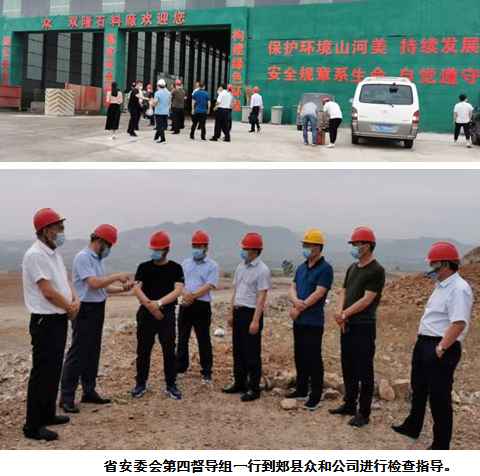 2020年5月24日,河南省安委会第四督导组一行对郏县众和公司的矿山安全和绿色矿山建设工作进行了检查指导,对该公司的安全管理、双重预防及信息化工作实施情况给予了充分肯定,并对该公司积极主动担当作为、践行矿山治理修复的“郏县模式”和取得的实际效果,给予了高度评价。