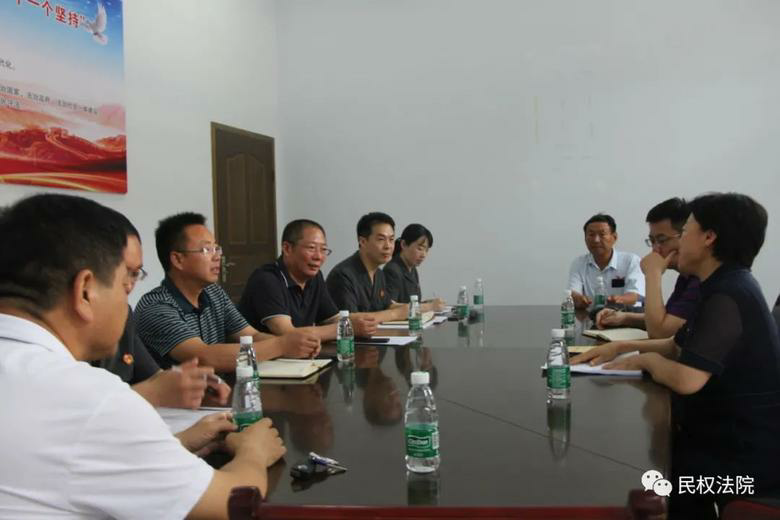 6月29日,市中院审委会专职委员彭灵侠一行到民权县法院王桥人民法庭调研。院党组书记、院长邢宝书陪同调研。
