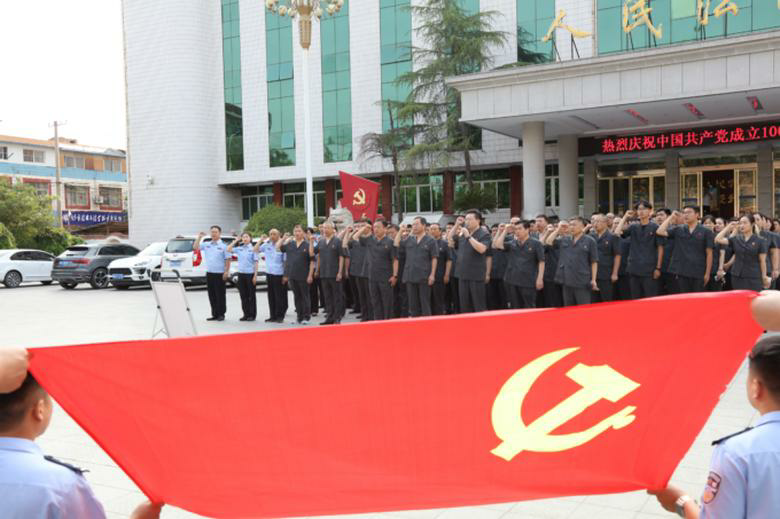 为庆祝中国共产党百年华诞,7月1日上午,河南省商丘市梁园区人民法院举行“庆七一”升国旗仪式暨重温入党誓词活动,全体党员干警整齐列队,向国旗致敬,重温入党誓词,强化了不忘初心、牢记使命的责任感和使命感。