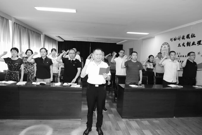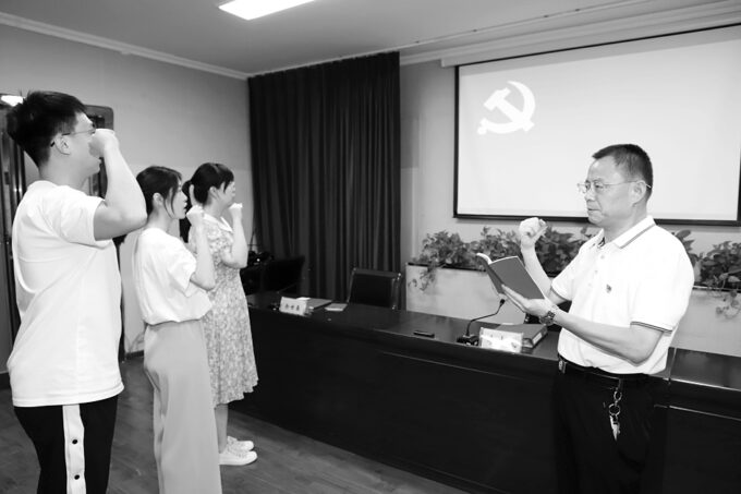 “我志愿加入中国共产党,拥护党的纲领……”在当天的活动中,还举行了新党员入党宣誓仪式,李志民带领全体党员重温入党誓词。