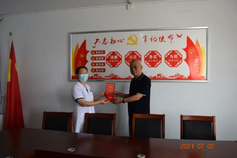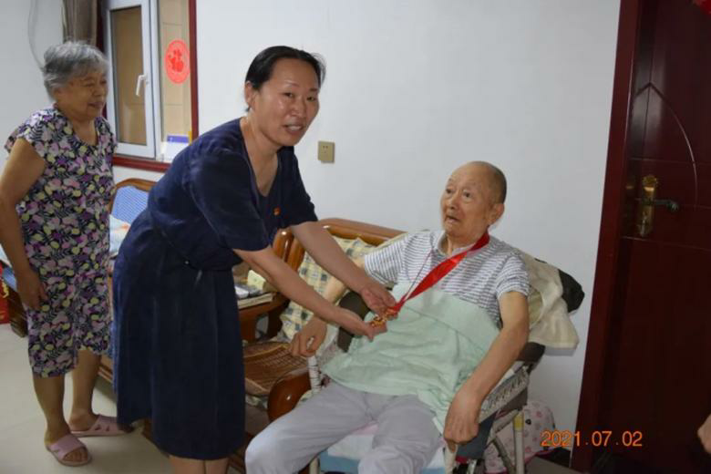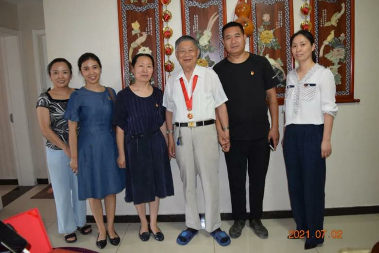 7月2日,我院党委在党委委员、纪检书记黄宇静带领下,走访慰问党龄超过50年的老党员,为他们颁发“光荣在党50年”纪念章,向他们转达党中央的关怀和祝福,并代表全院干部职工向老党员致以诚挚问候和崇高敬意。我院后勤党支部书记任晓冰、门诊党支部书记崔莹、行管党支部支委委员董新慧、外科党支部支委委员杨梅、党委办公室工作人员等陪同慰问。