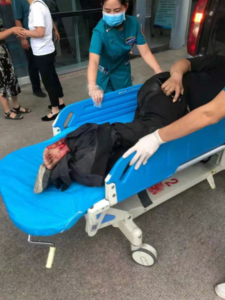 2021年7月6日晚高峰,商丘交警铁骑大队队员贾亚坤正在神火大道与北海路交叉口执勤时,突然听到一辆私家车车主大声呼救:“交警同志能帮帮我么,车上有病人,我们急需前往医院”。听到群众求救的声音,队员贾亚坤立即上前查看得知,一市民被渣土车碾伤右腿,失血过多已经昏迷。
