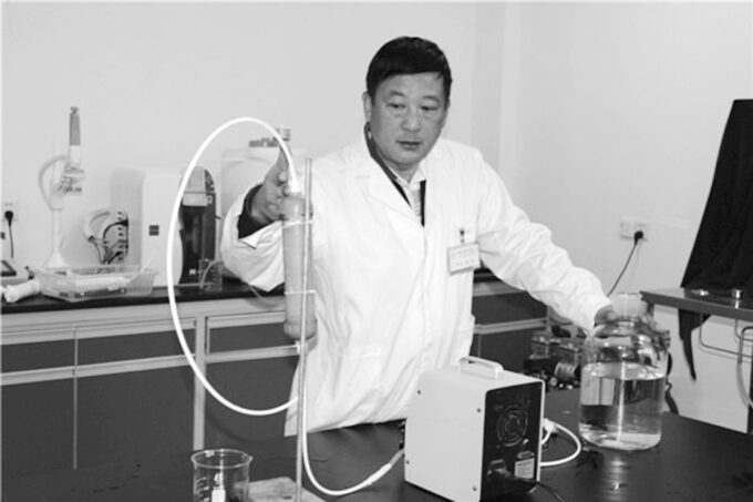 赵亮在进行离子交换纤维吸附净化含重金属水体试验。(资料图片)