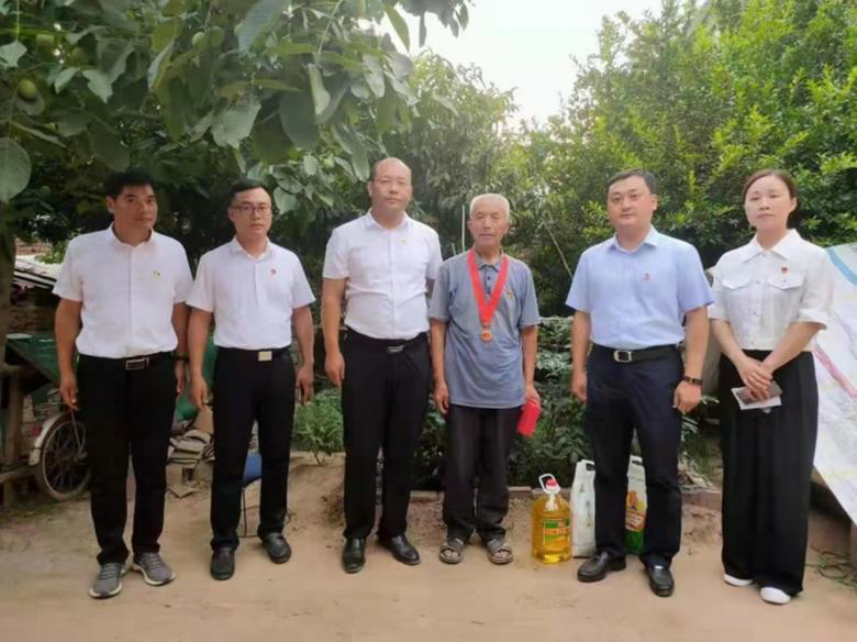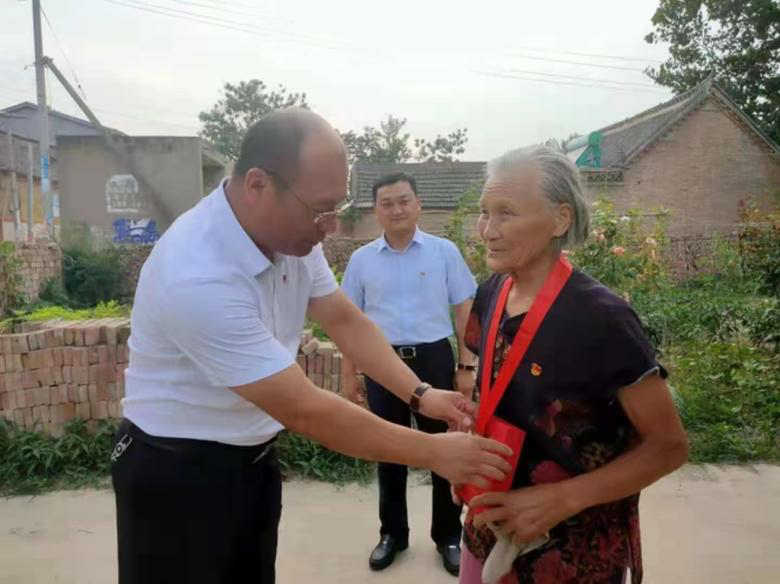 一百年征程浩荡,五十载初心如磐。在全党全国上下喜迎建党100周年之际,杞县柿园乡党委于6月30日上午开展“光荣在党50年”纪念章颁发暨“七一”老党员慰问活动,乡党委书记张志强带领部分班子成员前往“光荣在党50年”老党员家中走访慰问,代表组织为老党员颁发纪念章,送去慰问品,向他们传达党组织的关怀和温暖,并致以亲切问候和崇高敬意。