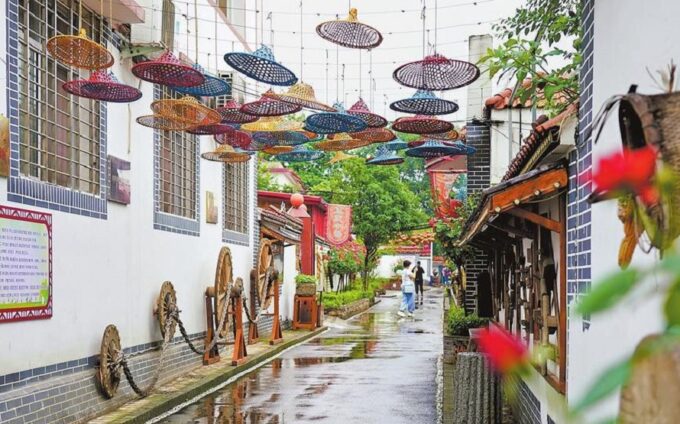 沿着这条“致富”路,来到西峡县五里桥镇前营村白庙民俗村,架子车、石磨台、红灯笼、玉米串儿……农具与文化墙相得益彰,宜居宜业宜养的美丽乡村映入眼帘。