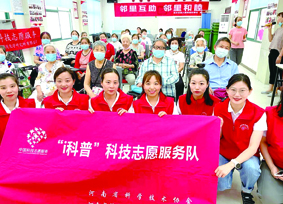 河南省科学院化学研究所副研究员、河南省首席科普专家霍萃萌(前排右三)和同事一起送科普进社区。