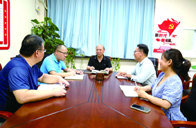 河南省化学学会副理事长兼秘书长侯益民(中)组织召开党员会,共同学习习近平总书记在两院院士大会和中国科协十大上的讲话精神。