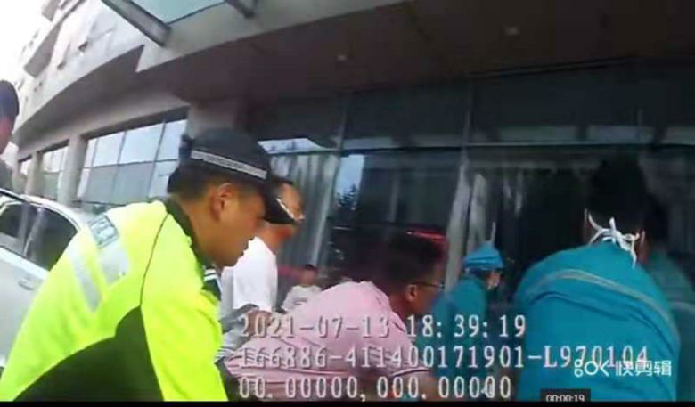 2021年7月13日18时40分许,商丘交警铁骑大队队员林兆旭在凯旋路与株洲路交叉口执勤时,一辆私家车司机急促的向铁骑队员求助:“车上载着一位突发心脏病的老人,急需前往市第一人民医院,请求帮助。”此时,队员看到车内一位老人手捂着心口处,表情凝重。