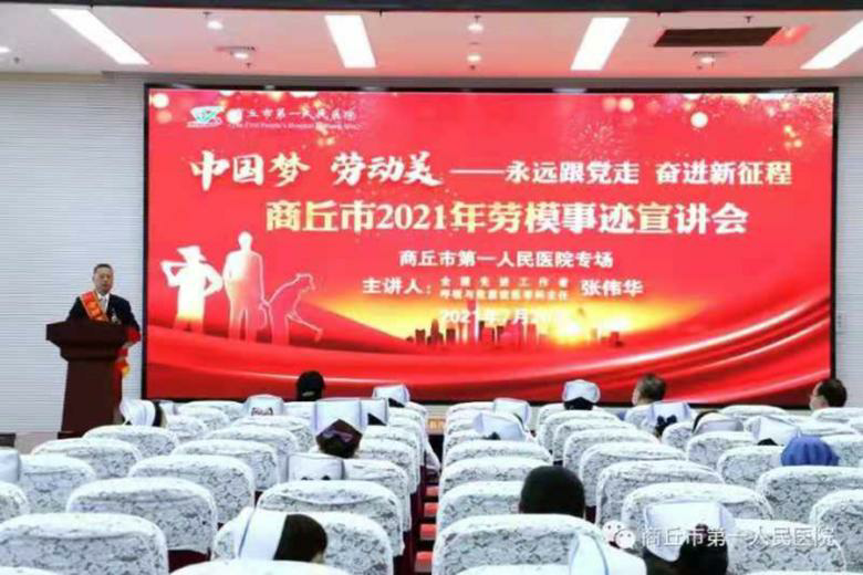 7月20日下午,商丘市第一人民医院在儿科医技楼17楼会议室举办了“中国梦·劳动美——永远跟党走 奋进新征程”全国劳模事迹宣讲会。党委书记、院长韩传恩,党委委员、工会主席张玉玲,党委委员、工会副主席赵梅及来自临床医技科室的医护人员代表等160余人参加了报告会。