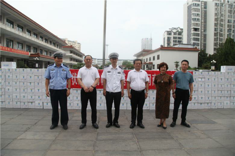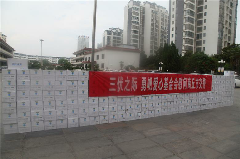7月23日,商丘市勇帆爱心基金会发起人王胜勇、名誉会长张久超、名誉会长董雅静、常委副会长刘鸿伟、秘书长刘辉等一行5人来到商丘市公安局交警支队,向连日高温下仍坚守在交通管理工作一线的基层民警辅警送去了矿泉水,对他们为了市民出行安全在高温下坚守表示深深敬意。交警支队党委书记、支队长张政勇,交警支队党委委员、警务保障大队大队长张明星和部分民警辅警代表参加了慰问。