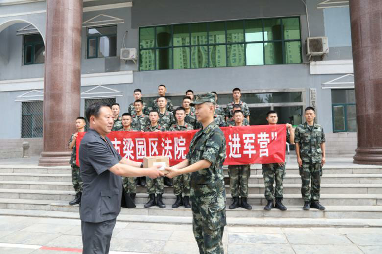 在“八一”建军节来临之际,为进一步加强军民团结,7月27日上午,河南省商丘市梁园区人民法院组织干警前往武警部队、梁园区武装部看望慰问官兵,向广大官兵致以节日的祝贺,并送法律书籍,开展法律辅导,受到了官兵们的热烈欢迎和好评。
