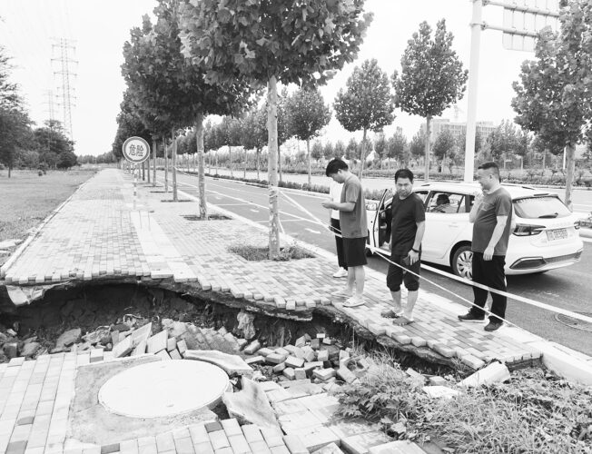 河南省照明学会副理事长单位——郑州市市政工程勘测设计院领导带队对郑州市经开区塌方现场进行抢险技术服务。
