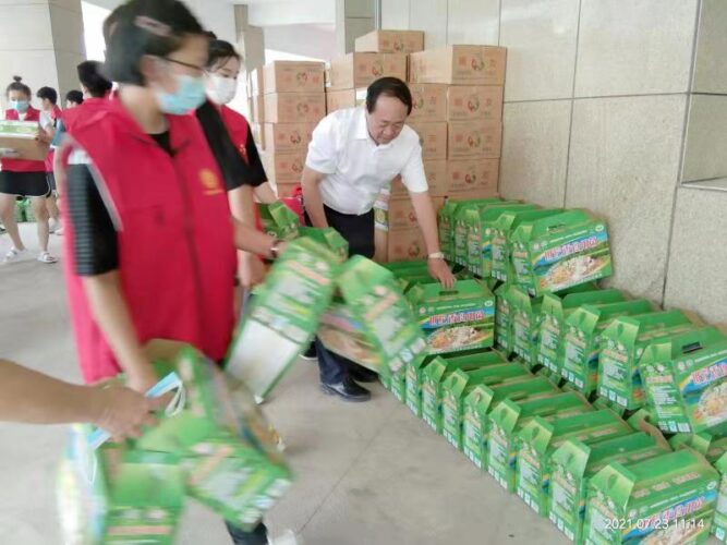 灾情牵动着全国优秀共产党员、河南世纪香食用菌开发有限公司党支部书记董事长——李彦增的心,他将社会责任为己任,积极行动献爱心。22日中午,李彦增亲自带领公司党员和骨干,牺牲休息时间,精心挑选一批为国外客户生产的珍稀食用菌组合罐头和采用国内领先技术刚刚生产出的一批工厂化瓶栽灵芝干品,调整出口计划,于 23日上午包装和装车发货。当天一早李彦增亲自带队,通过和许昌市建安区慈善总会联系,亲手将这批价值22万元的食用菌救灾物资送抵长葛市慈善总会。当天,李彦增还同在场的建安区、长葛市志愿者一道,将一箱箱食用菌罐头和灵芝干品从货车上卸下来,码好垛后,他不顾汗湿衣衫,又仔细向长葛市慈善总会工作人员逐一说明珍稀食用菌罐头和工厂化灵芝干品的食用方法及注意事项,讲解产品提升免疫力等的原理功效。