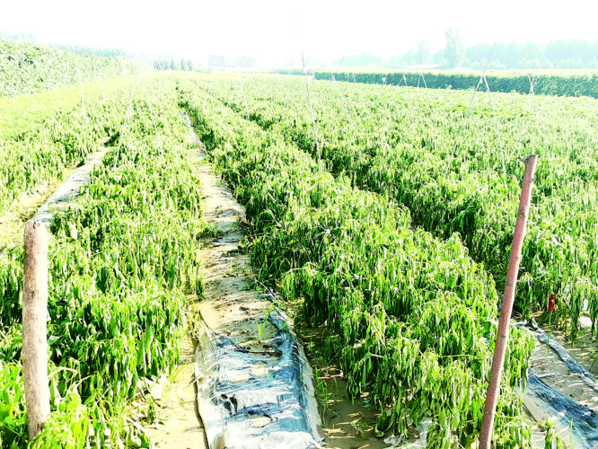 中牟县受灾辣椒田块。