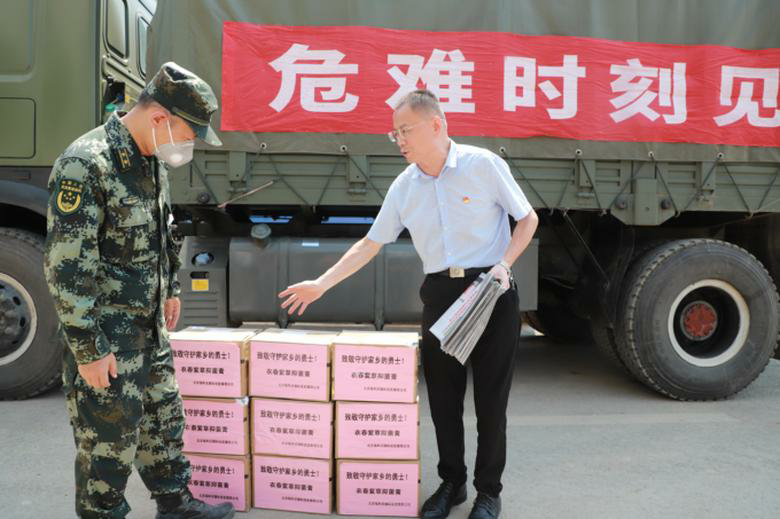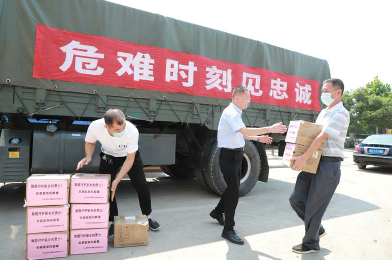 7月30日,受河南省科协的委托,河南科技报社社长李志民带队来到阜外华中心血管病医院,看望慰问连日奋战在一线的救灾部队官兵,向广大官兵表示衷心的感谢和崇高的敬意,并为他们送去1800支药剂。