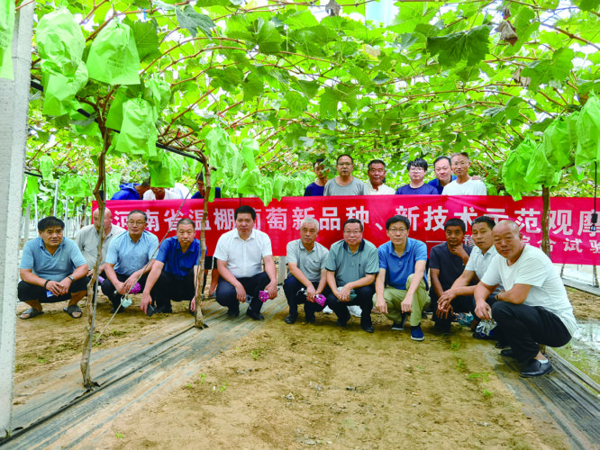 日前,由省农科院、国家葡萄产业技术体系豫东综合试验站主办的河南省阳光玫瑰葡萄温棚促早栽培示范观摩会在宁陵县为民葡萄种植专业合作社召开。省农业农村厅经作战站长郑乃福,中国农科院郑州果树所副所长、研究员刘崇怀,省农科院园艺研究所所长、研究员尚泓泉等专家,以及当地农业农村主管部门领导,农业科研相关专家,“四优四化”特色林果专项葡萄专题专家、豫东综合试验站示范县技术人员,葡萄种植企业、合作社和家庭农场及葡萄种植户共86人参加了观摩会。