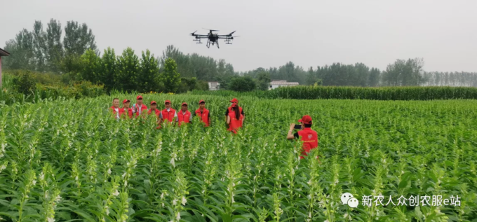会后,大家参观了科技小院的芝麻品种田间长势及植保飞防消杀演示活动。