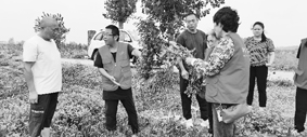 新乡市农科院专家在优质花生示范基地查看花生受灾情况。
