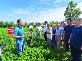 7月27日,臧秀旺研究员、张俊副研究员与驻马店市农科院、信阳市农科院花生团队专家一起,先后到正阳县、罗山县示范基地开展花生灾后技术指导,提出应及时控旺和防治病虫害,确保花生不旺长倒伏和早衰;对于春播花生,应根据荚果成熟情况,及时收获。