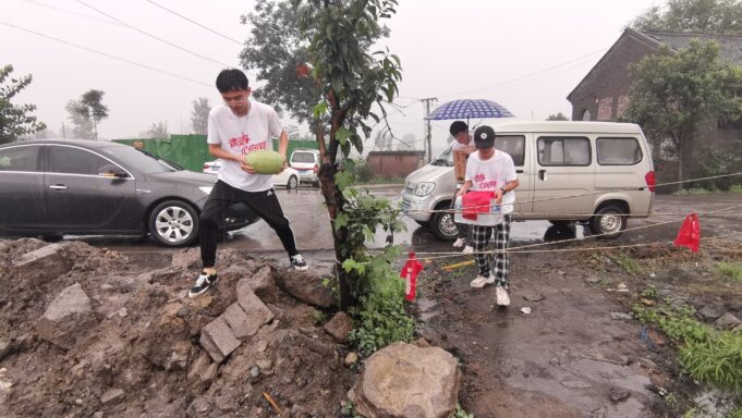 当天下午,许良镇再次遭遇强降雨。实践团成员和许良镇的群众党员干部不畏冒着如注大雨,脚下踩着泥泞,奔赴抗洪一线,巡视河道,搬运物资,虽然大家感觉很累,但能为受灾地区献出自己一份绵薄之力,大家的内心都很高兴。